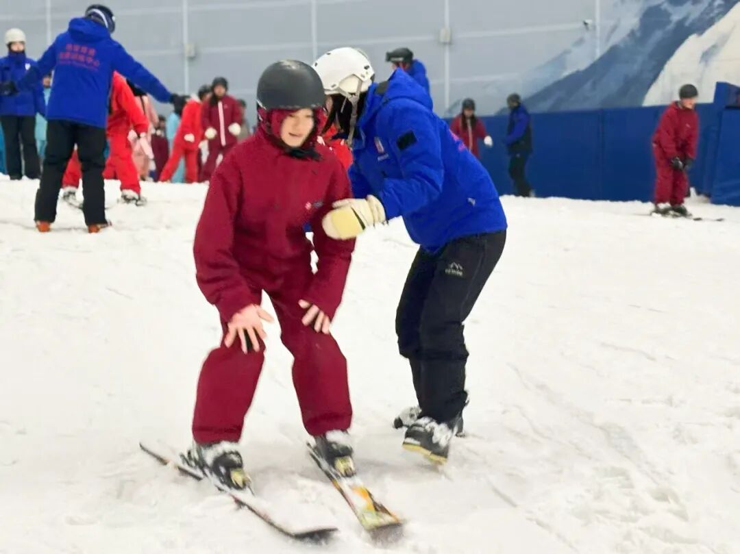 除了滑雪体验,研学活动还设置了“冰雪运动文化科普”环节。通过趣味讲解与互动问答,让学生了解冰雪运动的发展历程、冬奥会项目知识,以及成都冰雪产业的发展现状,进一步拓宽视野。“第一次体验滑雪,既紧张又兴奋!”来自护理2402班的袁馨表示,这次研学不仅让自己学会了一项新技能,更锻炼了抗压能力和团队协作意识。